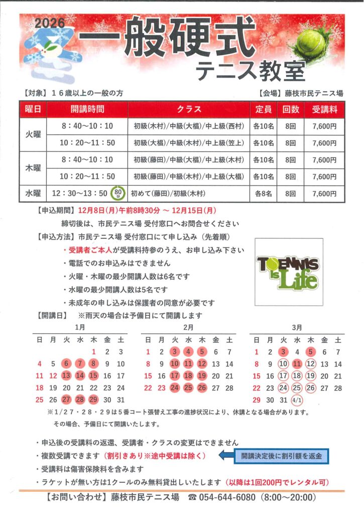 【募集】冬の硬式テニス教室