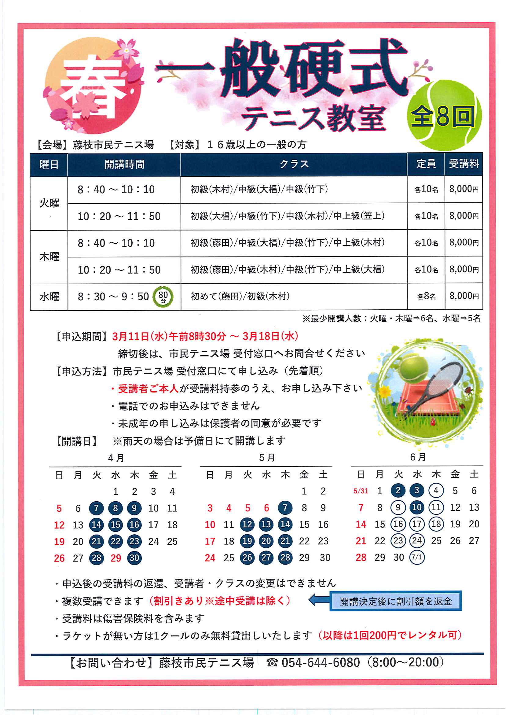 【募集】春の硬式テニス教室